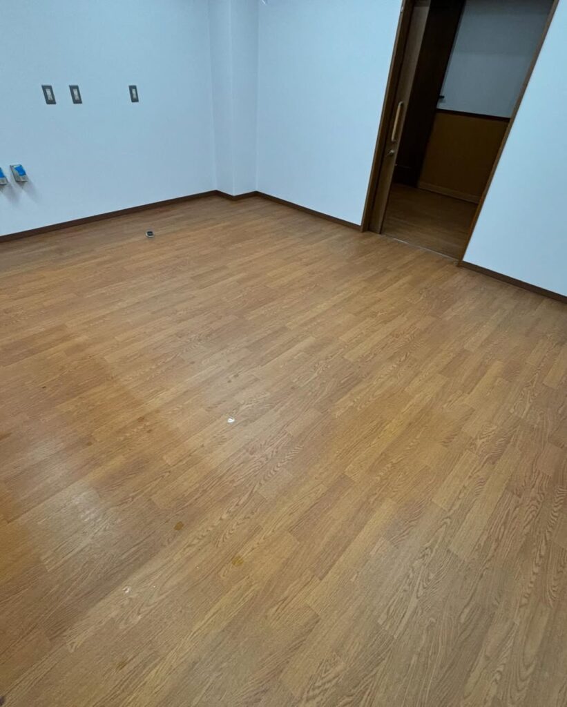 今回は、巨大老人ホームの床の剥離洗浄作業を行いました。老人ホームの厨房は、日々の調理で油汚れが蓄積しやすく、通常の洗浄では落としきれない頑固な汚れがこびり付いてしまうことがあります。体力勝負の一日でし